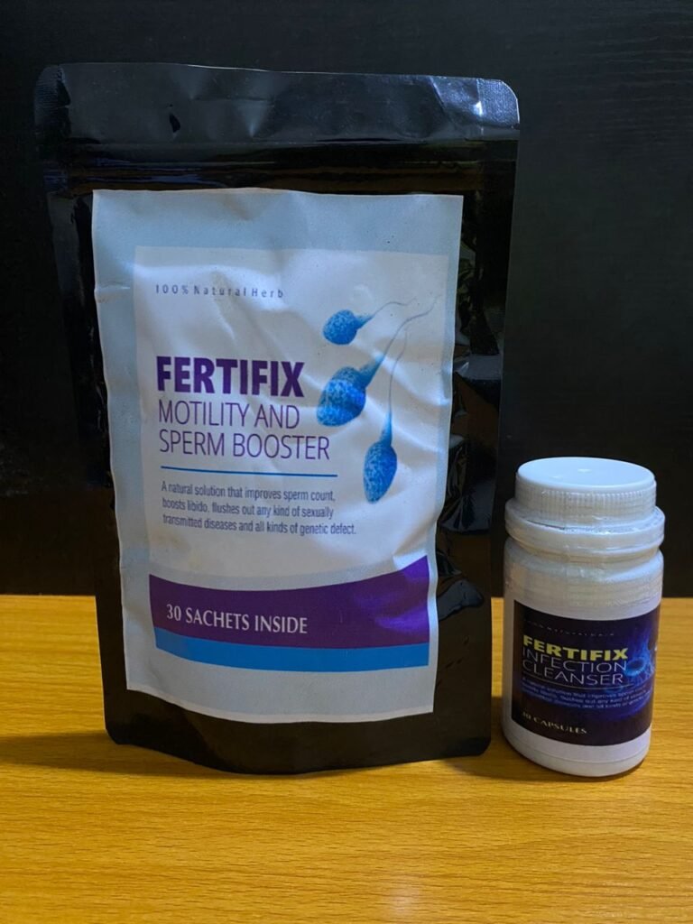 PACK A FERTIFIX MOTILITY AND SPERM BOOSTER, cures any form of watery sperm, low sperm count, and improves fertility including Azoospermia aids sperm movement, improves erection, cures quick ejaculation and improves sperm speed.